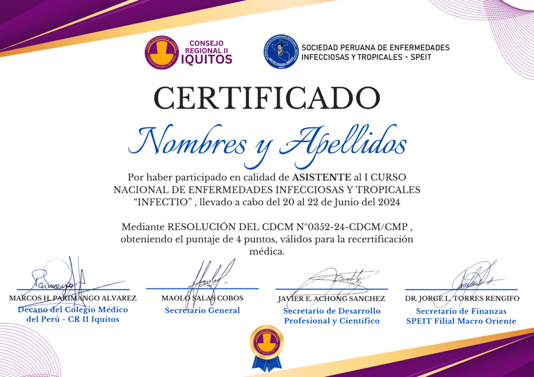 En conclusión, el curso Infectio ha sido un éxito rotundo en términos de impacto educativo y satisfacción de los participantes. Los conocimientos impartidos y las habilidades desarrolladas contribuirán sin duda a mejorar la atención médica en la región de Iquitos y sus alrededores. Es crucial continuar fortaleciendo la formación en enfermedades infecciosas, promoviendo eventos similares y facilitando el acceso a recursos educativos actualizados. Solo a través de un compromiso constante con la educación médica continua, se podrá enfrentar de manera efectiva los desafíos que representan las enfermedades infecciosas en la región.